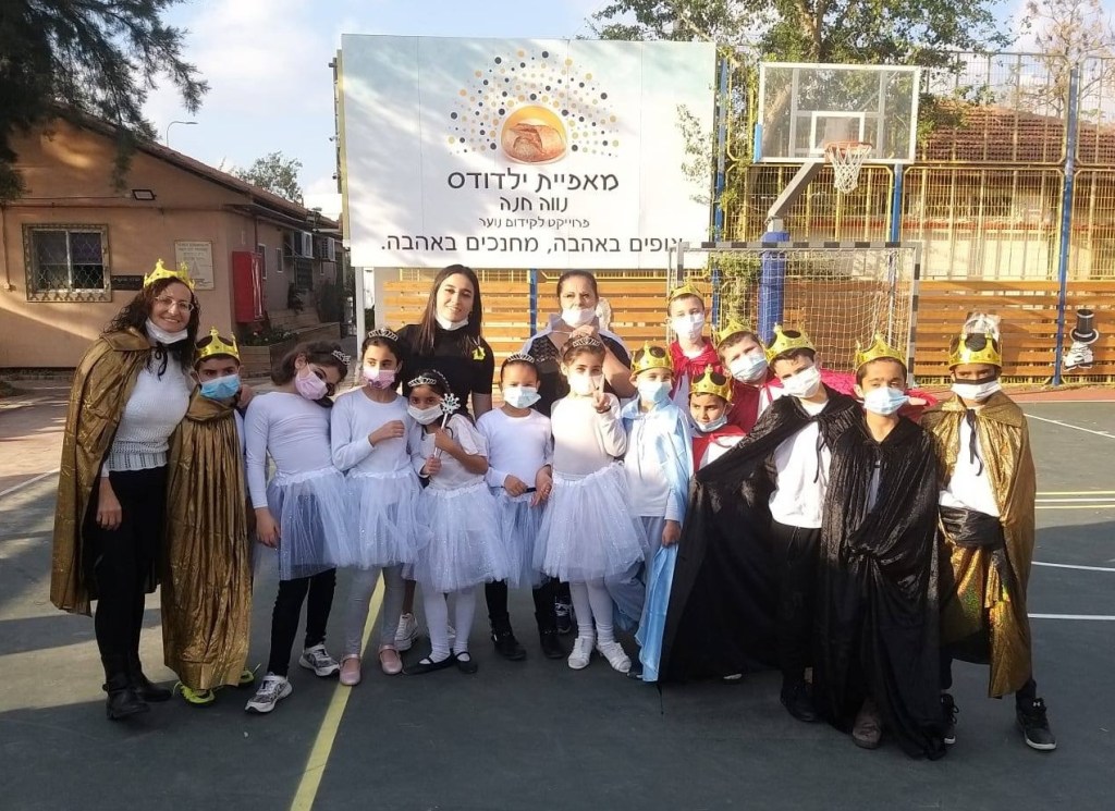 What makes it so different are the teaching and work methods by our staff and young leadership. Rabba Liron Levy continues to teach the Bar/Bat Mitzvah children in small groups. These same methods were held during Purim and Passover. With each family group operating on its own, the NEVE HANNA staff and children celebrated Purim with festive costumes, music, singing and dancing.
